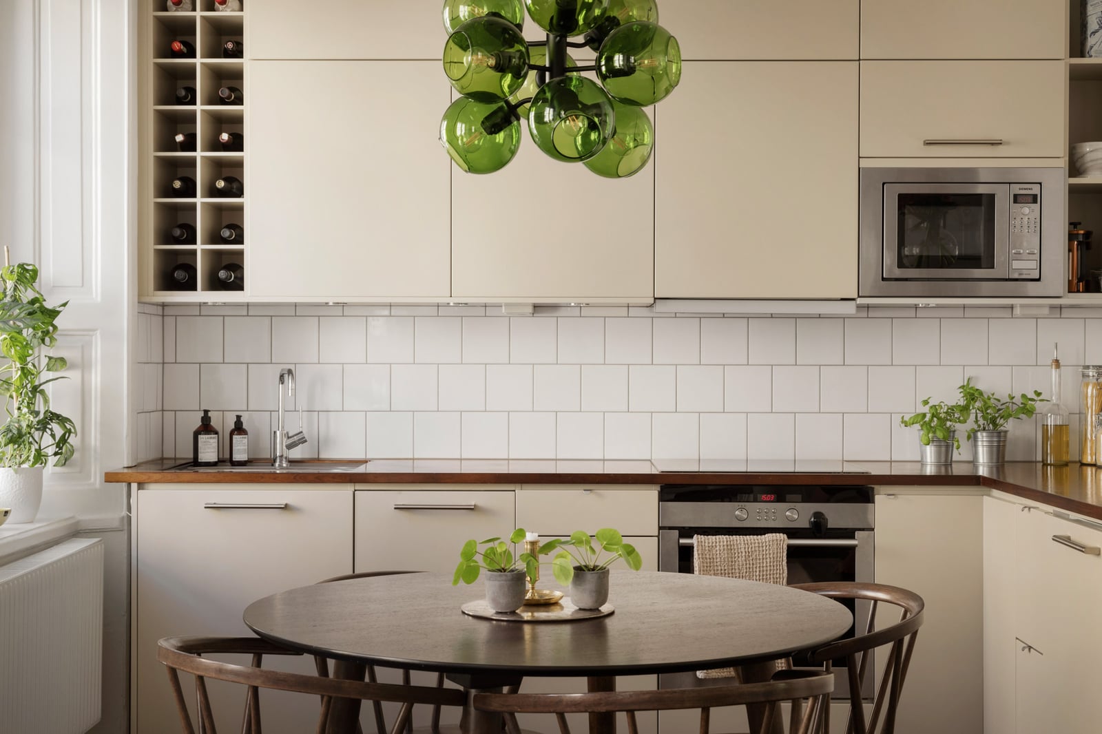 Öppen modern planlösning mellan kök och vardagsrummet, tre stora fönsterpartier med spröjs och djupa fönsterbrädor med fina fönsternischer. I rummet som har en takhöjd om ca 3 meter får du enkelt plats med en större soffgrupp samt matbord för 4-6 personer.Kök